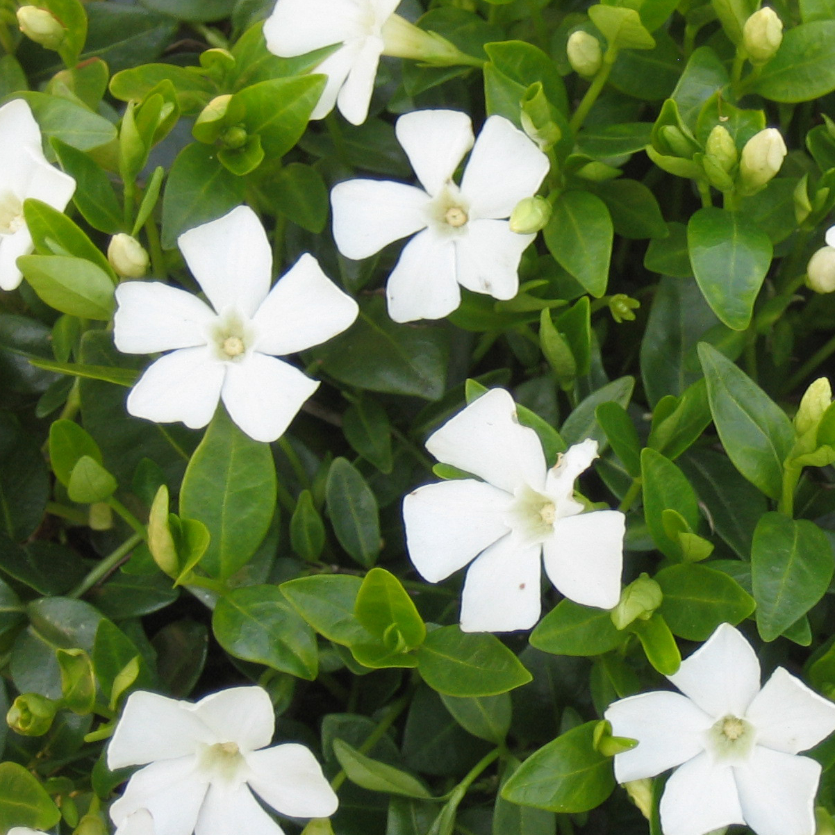 Vinca minor (Kleines Immergrün) ist ein immergrüner, mehrjähriger Bodendecker, der bevorzugt in halbschattigen bis schattigen Lagen eingesetzt wird. Die Art bildet durch kriechende Triebe dichte Teppiche, die eine zuverlässige Unkrautunterdrückung gewährleisten. Sie ist anspruchslos hinsichtlich Bodenbeschaffenheit, nach Etablierung trockenheitstolerant und pflegearm. Neben ihrer hohen Schattenverträglichkeit bietet sie durch frühjahrsbetonte Blüte ökologische Zusatzwerte für bestäubende Insekten und eine ganzjährige Strukturwirkung durch dauerhaftes Laub.