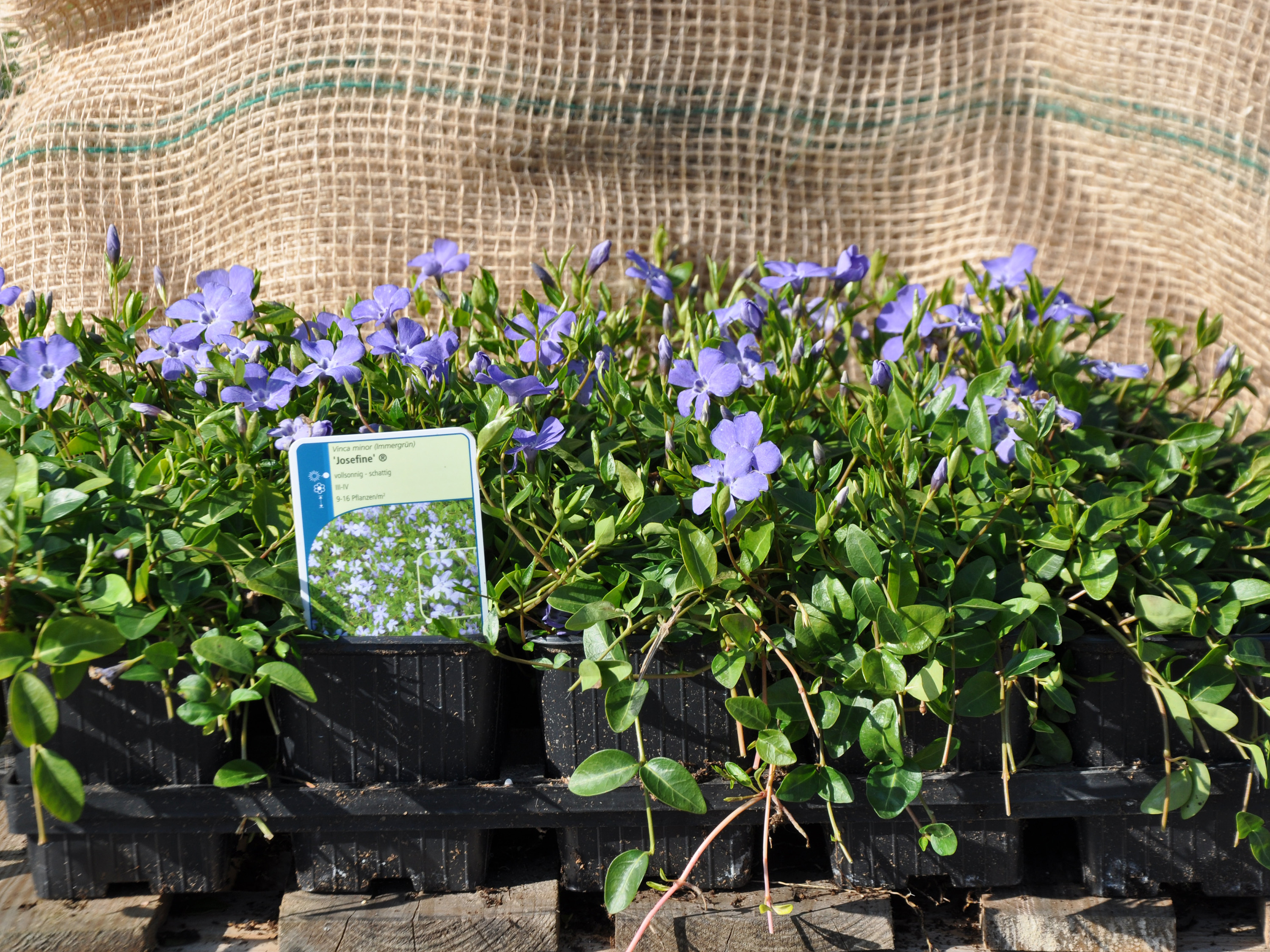 Vinca minor (Kleines Immergrün) ist ein immergrüner, mehrjähriger Bodendecker, der bevorzugt in halbschattigen bis schattigen Lagen eingesetzt wird. Die Art bildet durch kriechende Triebe dichte Teppiche, die eine zuverlässige Unkrautunterdrückung gewährleisten. Sie ist anspruchslos hinsichtlich Bodenbeschaffenheit, nach Etablierung trockenheitstolerant und pflegearm. Neben ihrer hohen Schattenverträglichkeit bietet sie durch frühjahrsbetonte Blüte ökologische Zusatzwerte für bestäubende Insekten und eine ganzjährige Strukturwirkung durch dauerhaftes Laub.
