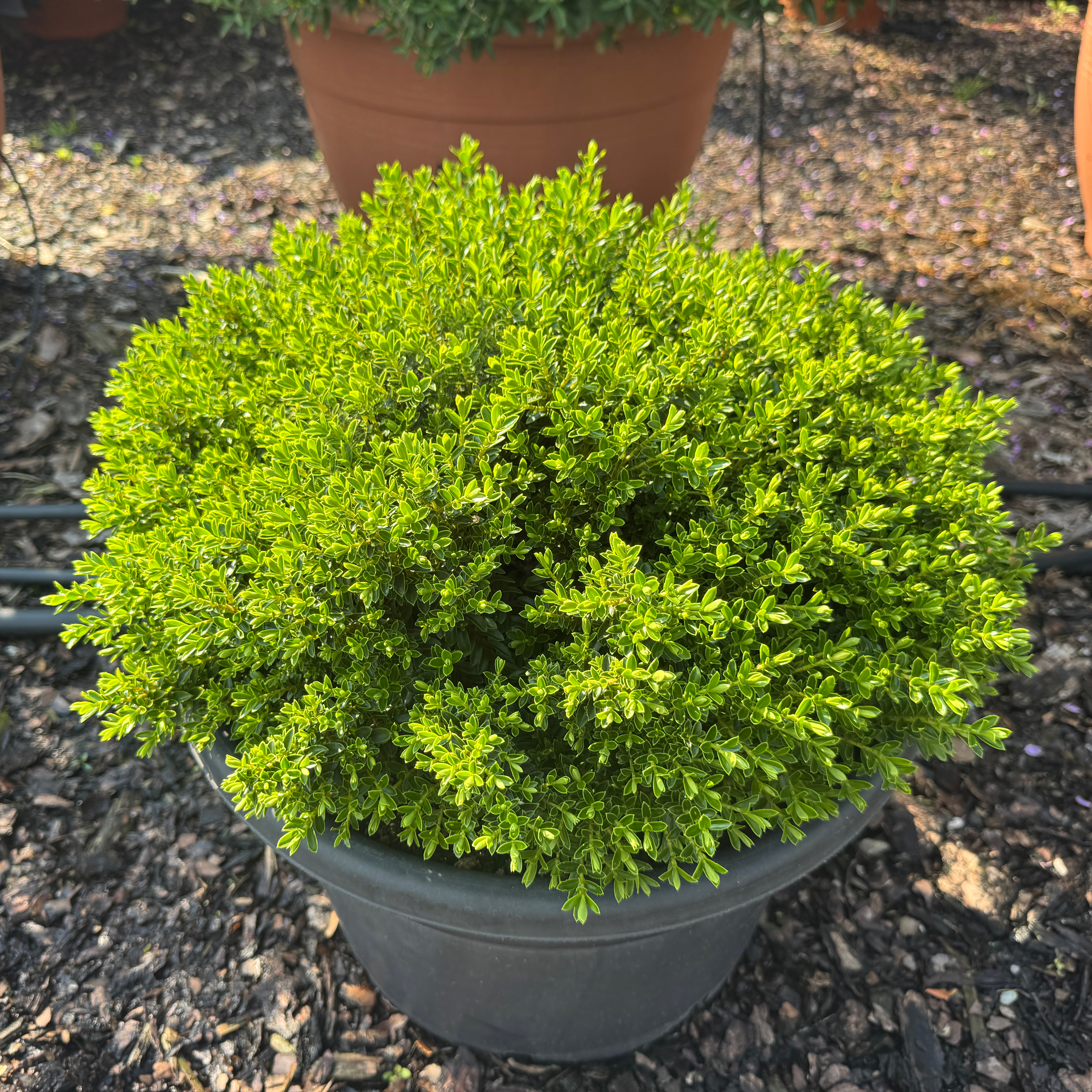 Hebe Nescio überzeugt mit kleinen, dichten, dunkelgrünen Blättern und einer kompakten, kugeligen Wuchsform. Sie ist relativ anspruchslos, verträgt Sonne und Halbschatten und blüht zart-weiß mit gelegentlichen bläulichen Nuancen.